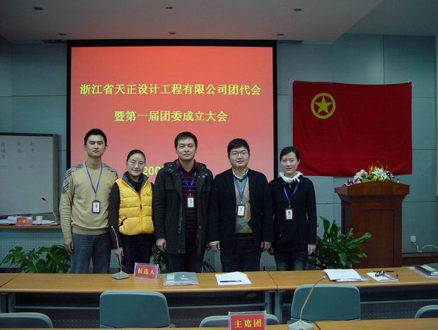 共青團浙江省天正設計工程有限公司代表大會暨團委成立大會于2009年12月25日在公司南四樓會議室舉行。會議聽取并通過了公司上一屆團總支所作的工作報告;經中化藍天集團公司團委批準,成立共青團浙江省天正設計工程有限公司委員會,本次大會宣布公司團委成立并選舉產生了公司新一屆團委委員。