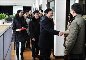 2013年2月19日,公司全體員工迎來了春節(jié)長(zhǎng)假后的第一個(gè)工作日。上午10點(diǎn)整,公司黨委書記、總經(jīng)理萬軍率公司領(lǐng)導(dǎo)帶著新春的祝福和問候,逐一走訪公司各個(gè)樓層、辦公室,向公司全體員工拜年,萬總代表公司領(lǐng)導(dǎo)感謝大家在過去的一年里為公司發(fā)展做出的貢獻(xiàn),祝福全體員工新年幸福快樂。