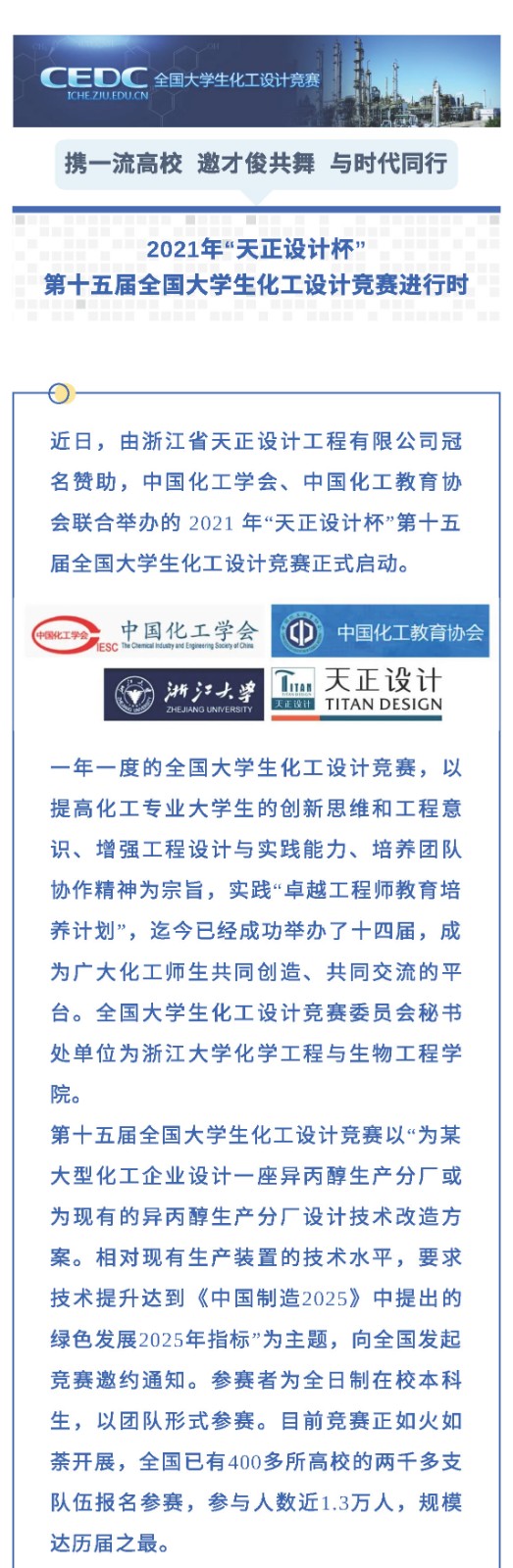 攜一流高校 邀才俊共舞 與時代同行——2021年“天正設計杯”第十五屆全國大學生化工設計競賽進行時