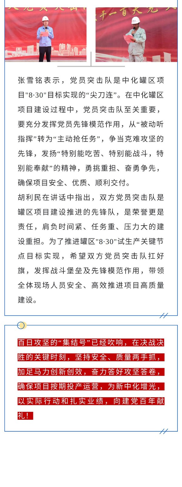 吹響突擊隊集結號 決戰(zhàn)決勝百日攻堅——中化連云港循環(huán)經(jīng)濟產(chǎn)業(yè)園罐區(qū)一期工程舉行"大干一百天"黨員突擊隊授旗宣誓儀式