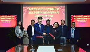 近日,浙江省天正設(shè)計(jì)工程有限公司與浙江凈源膜科技股份有限公司共同簽署戰(zhàn)略合作協(xié)議。雙方基于“優(yōu)勢互補(bǔ)、資源共享、合作共贏”的原則,就高強(qiáng)纖維復(fù)合PTFE膜產(chǎn)品在工程項(xiàng)目中的應(yīng)用達(dá)成一致。