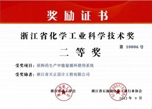 近日,我司開(kāi)發(fā)設(shè)計(jì)的“原料藥生產(chǎn)中能量循環(huán)使用系統(tǒng)”榮獲由浙江省化工學(xué)會(huì)、浙江省石油和化學(xué)工業(yè)行業(yè)協(xié)會(huì)頒發(fā)的浙江省化學(xué)工業(yè)科學(xué)技術(shù)獎(jiǎng)二等獎(jiǎng)。