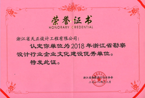 近日,根據(jù)浙江省勘察設(shè)計(jì)行業(yè)協(xié)會(huì)下達(dá)的《關(guān)于認(rèn)定2018年浙江省勘察設(shè)計(jì)行業(yè)企業(yè)文化建設(shè)優(yōu)秀單位的通知》浙設(shè)協(xié)字[2018]40號(hào),我司榮獲2018年浙江省勘察設(shè)計(jì)行業(yè)企業(yè)文化建設(shè)優(yōu)秀單位。