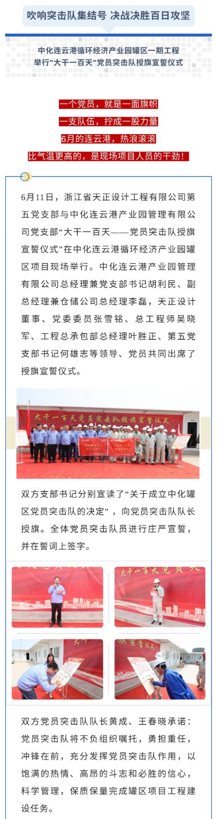 吹響突擊隊集結號 決戰(zhàn)決勝百日攻堅——中化連云港循環(huán)經(jīng)濟產(chǎn)業(yè)園罐區(qū)一期工程舉行"大干一百天"黨員突擊隊授旗宣誓儀式