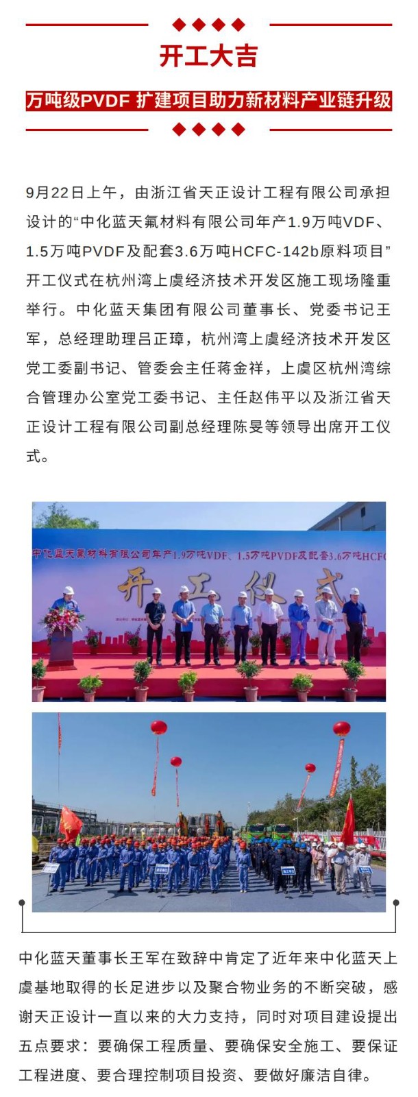 開工大吉!萬噸級PVDF 擴(kuò)建項(xiàng)目助力新材料產(chǎn)業(yè)鏈升級